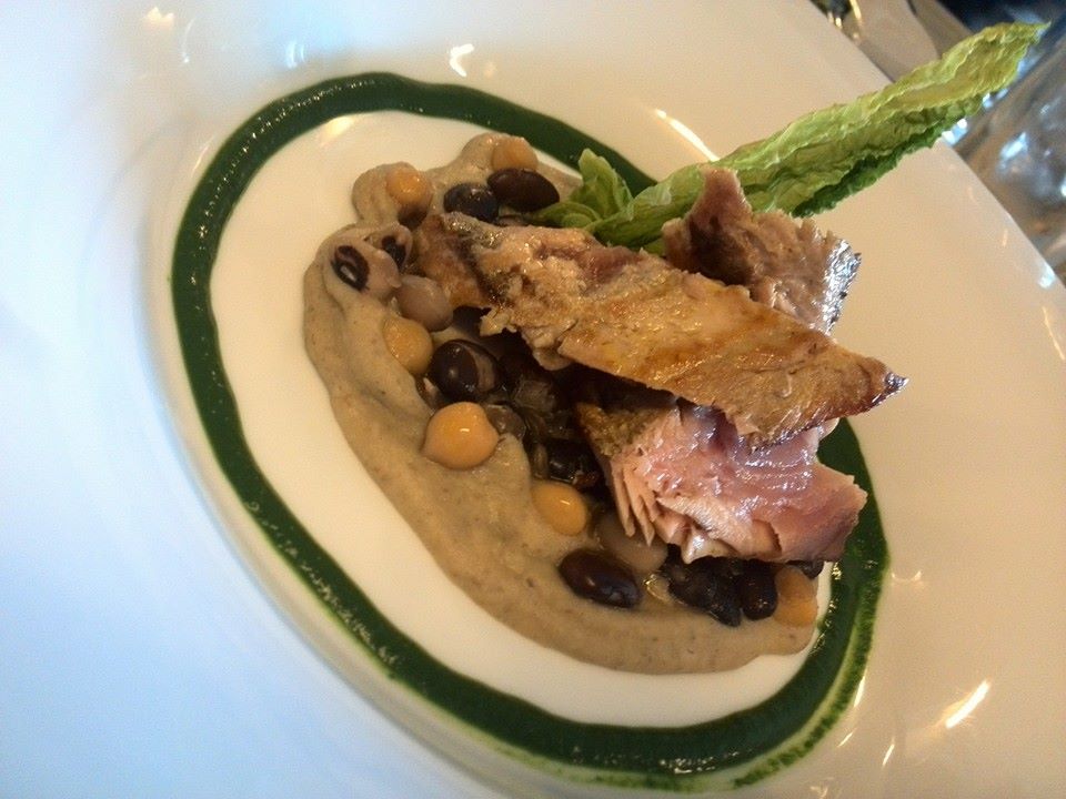 Poi li adagia sopra ad un letto di legumi, integri ed in crema, quasi a rispettare la consuetudine dell’accostamento storico fra tonno e i fagioli. A completare il tutto … una salsina di cavolo nero a dare un tocco di fresco e di vegetale.